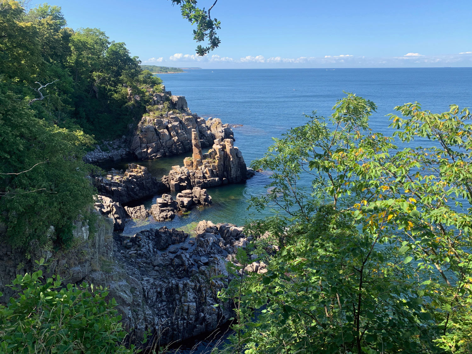 Her skærer havet sig ind i klippeformationer, der rejser sig som forstenede bølger, og landskabet skifter mellem lyse sprækkedale, mørke klippesider og udsigter mod Østersøens uendelige horisont.
